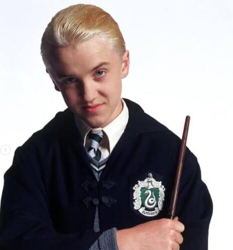 このルックスは、ハリーポッターの「マルフォイ」を意識したものらしいです。